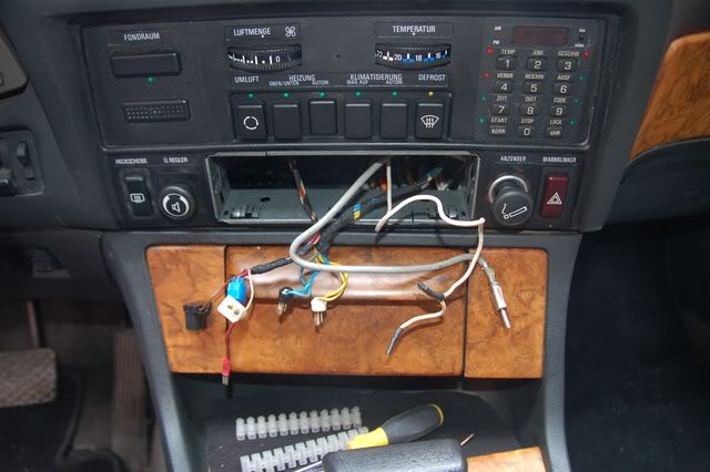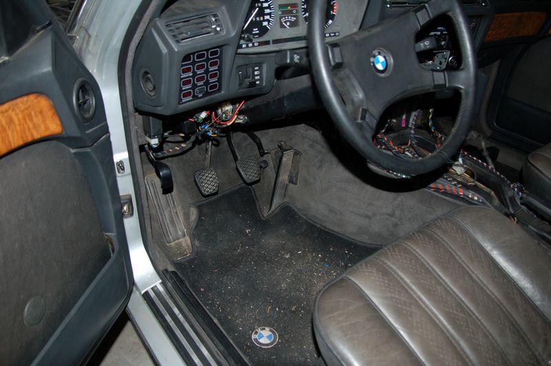 En dan de ombouw naar handgeschakeld. De 745i was voorzien van een aftermarket alarm.