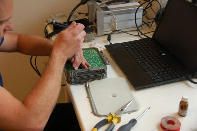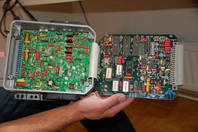 En wederom jammer. Adam dufde niet te desolderen. De kans op losse printsporen was hem te groot. Volgende oplossing dan maar, een volledig gechipte Motronic aanbied. Op E-bay stond een aanbieder en die had nog een 1 en een 2 chips Motronic liggen. De 1 chip Motronic reageert sneler en de print hiervan is die van de Motronic 1.3. Ik heb een 1.0.