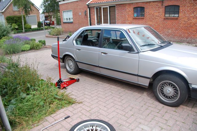 De zomer is alweer voorbij. De 745i is te koop en wordt weer in een iets originelere staat gebracht. De remmen gaan er af en worden vervangen door originele.
